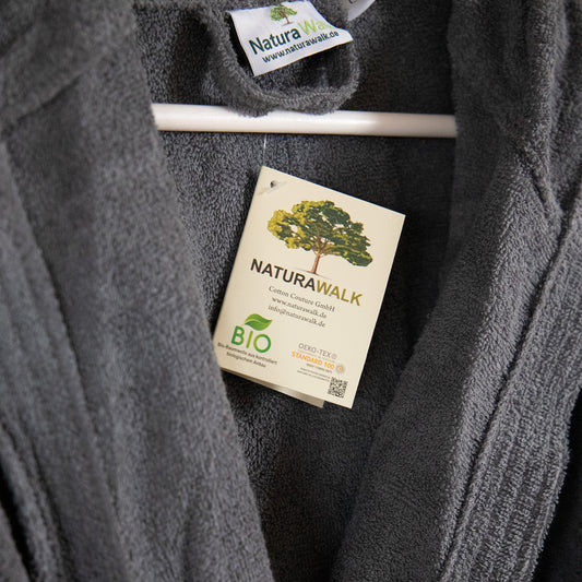 Bademantel mit Kapuze | NATURAWALK | Anthrazit | Bio-Baumwolle | unisex, lang
