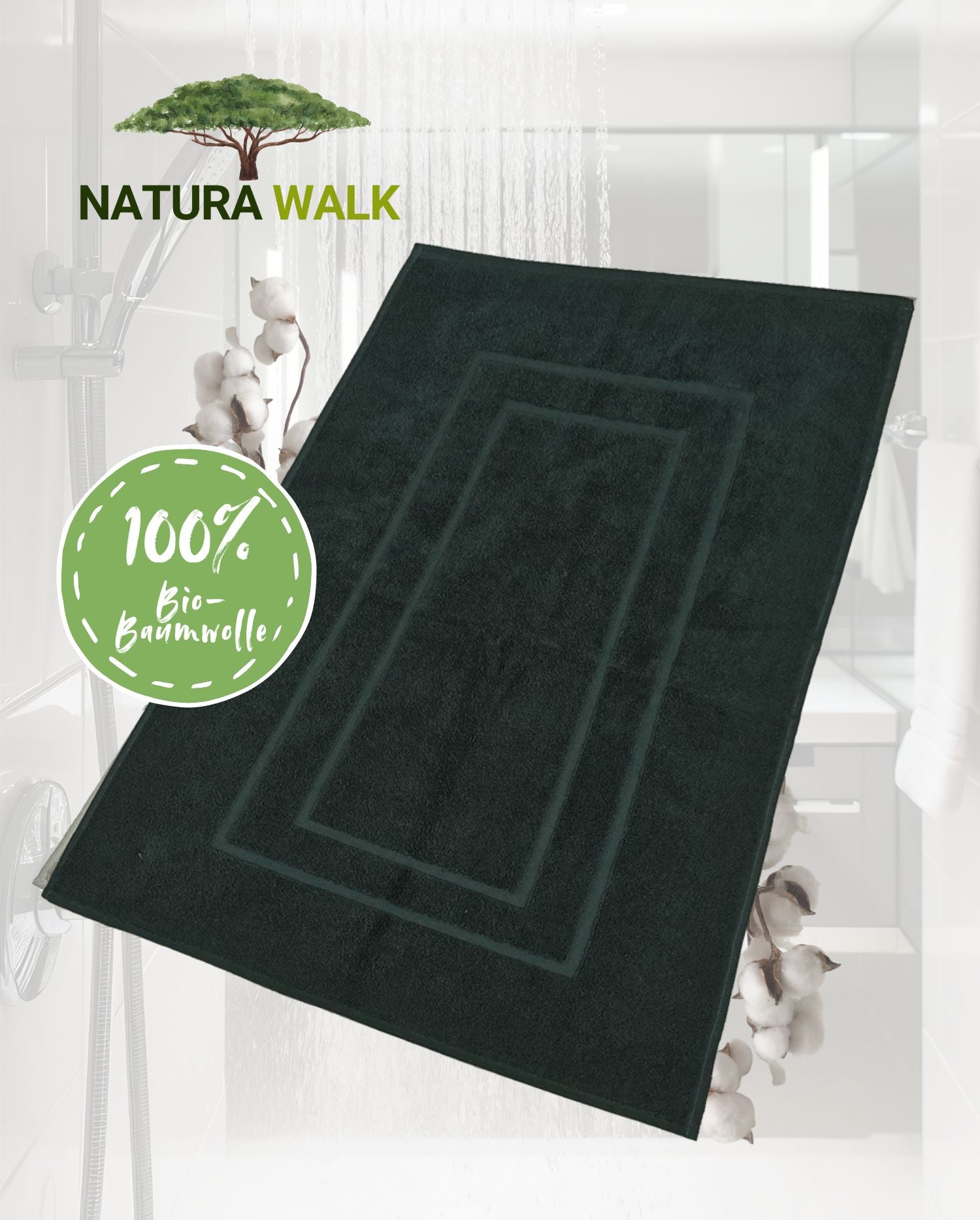 Hol dir Wohlfühl-Komfort ins Badezimmer mit der Badematte von NATURAWALK. Diese Badematte aus 100% Bio-Baumwolle misst 50x80cm und bietet mit einem Gewicht von 600 g/m² eine besonders weiche und saugfähige Oberfläche. Perfekt, um deine Füße nach der Dusche oder dem Bad angenehm trocken zu halten.