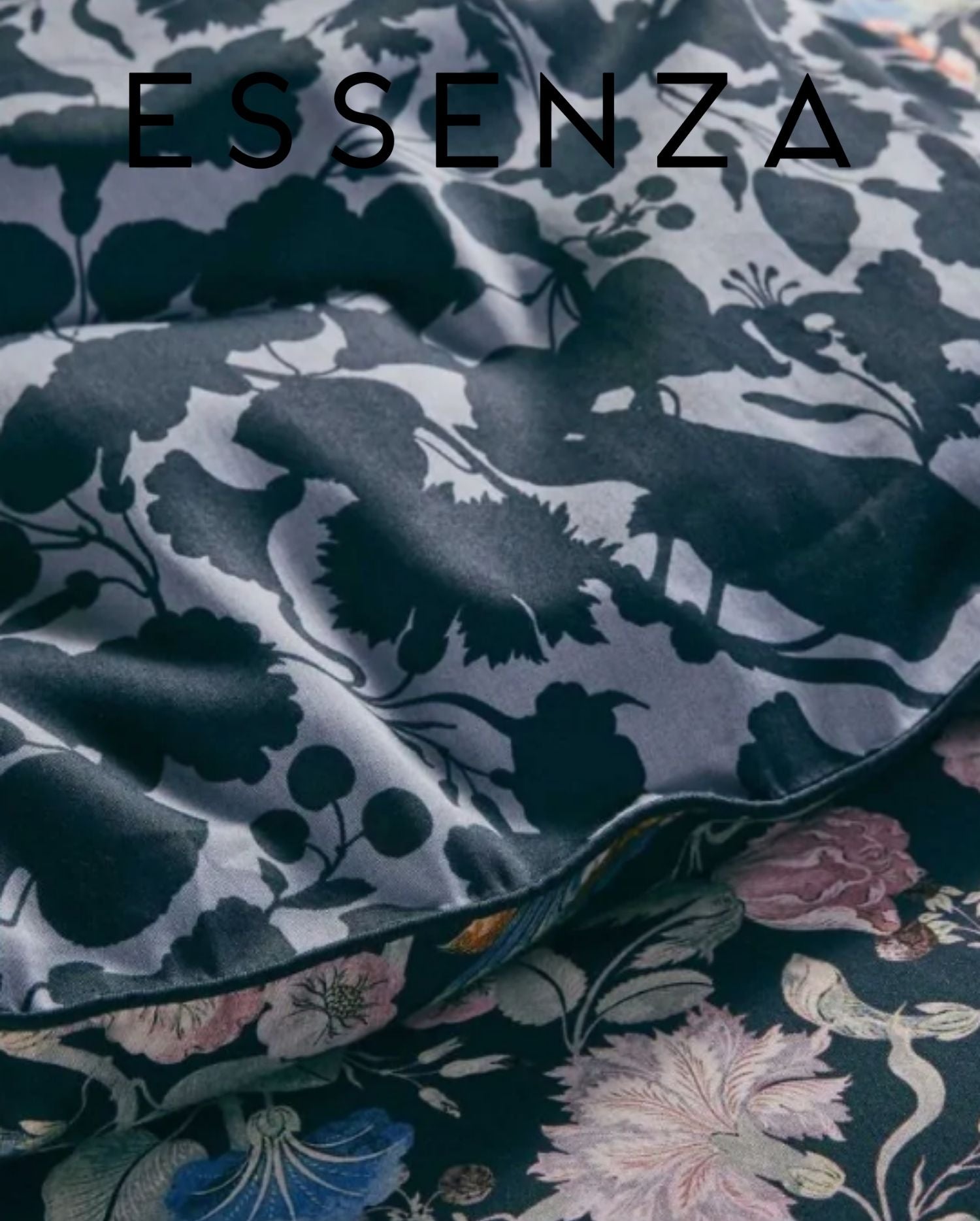 Ein besonderes Detail ist die Wendefunktion: Die Rückseite zeigt ein stilisiertes Silhouettenmuster, das eine dezente Alternative zum floralen Dessin bietet und vielseitige Stylingmöglichkeiten eröffnet. Eine elegante Paspelierung an den Rändern von Bettbezug und Kissenhüllen unterstreicht den hochwertigen Charakter des Designs. Der praktische Reißverschluss erleichtert das Beziehen und sorgt für Komfort im Alltag.