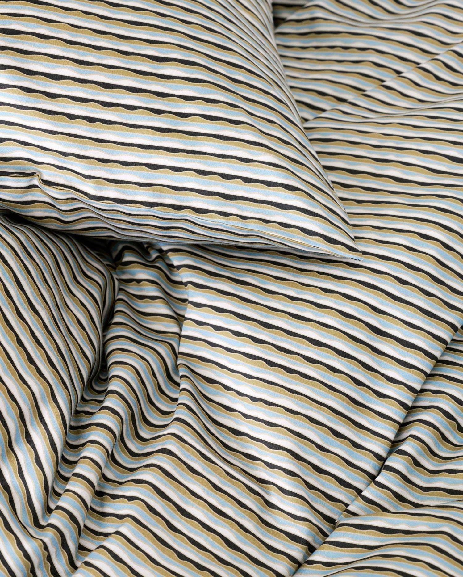 Die Marc O’Polo HOME Bettwäsche überzeugt durch ein charmant gewelltes, diagonal verlaufendes Design, das von einer fein abgestimmten Vintage-Farbpalette getragen wird. Die dezente Linienführung verleiht dem Dessin Tiefe und Bewegung, ohne aufdringlich zu wirken, und fügt sich harmonisch in moderne wie natürliche Wohnkonzepte ein.