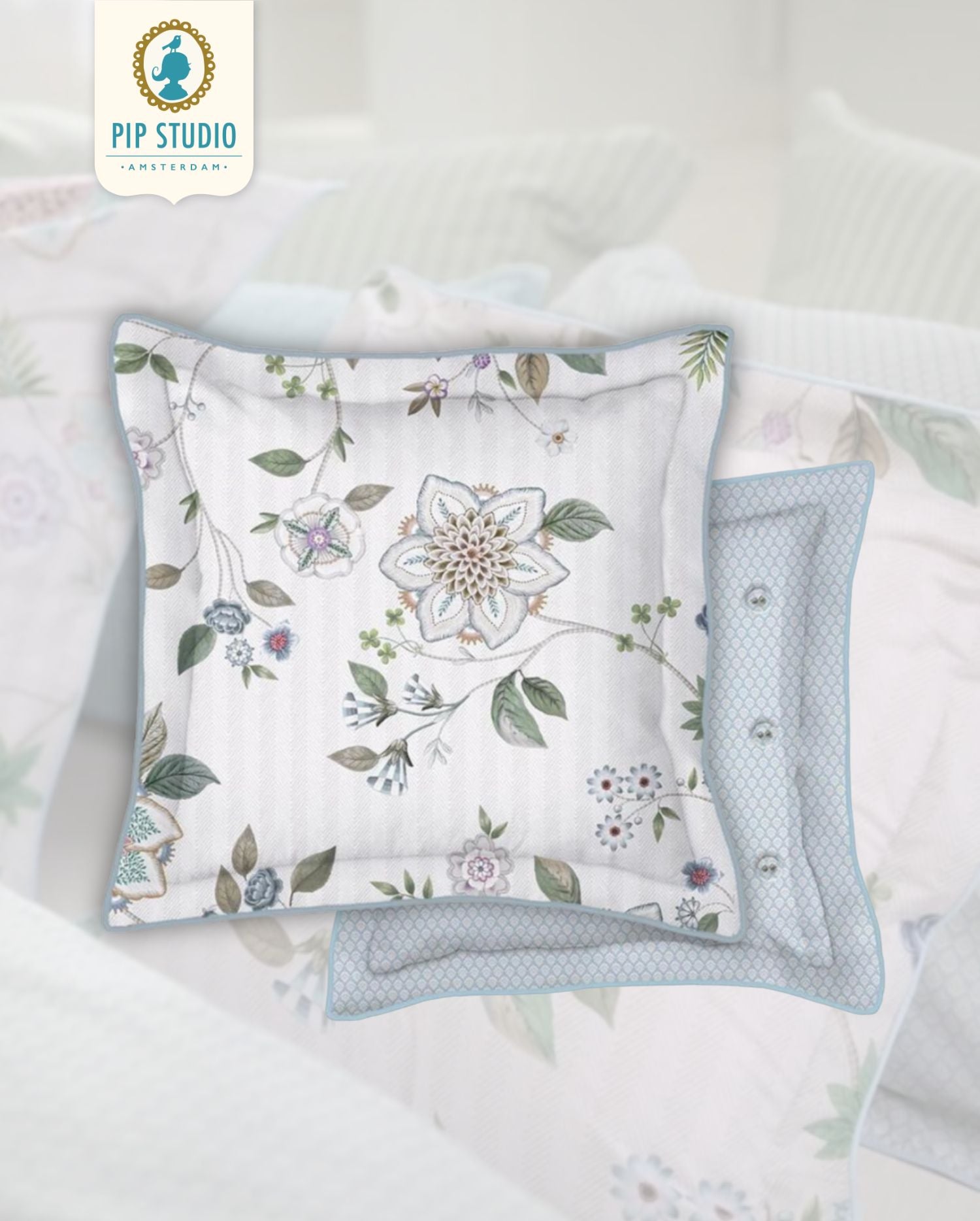 🌼 Pip Studio Zierkissen „Flores Bailando“ Off White – 45x45 cm