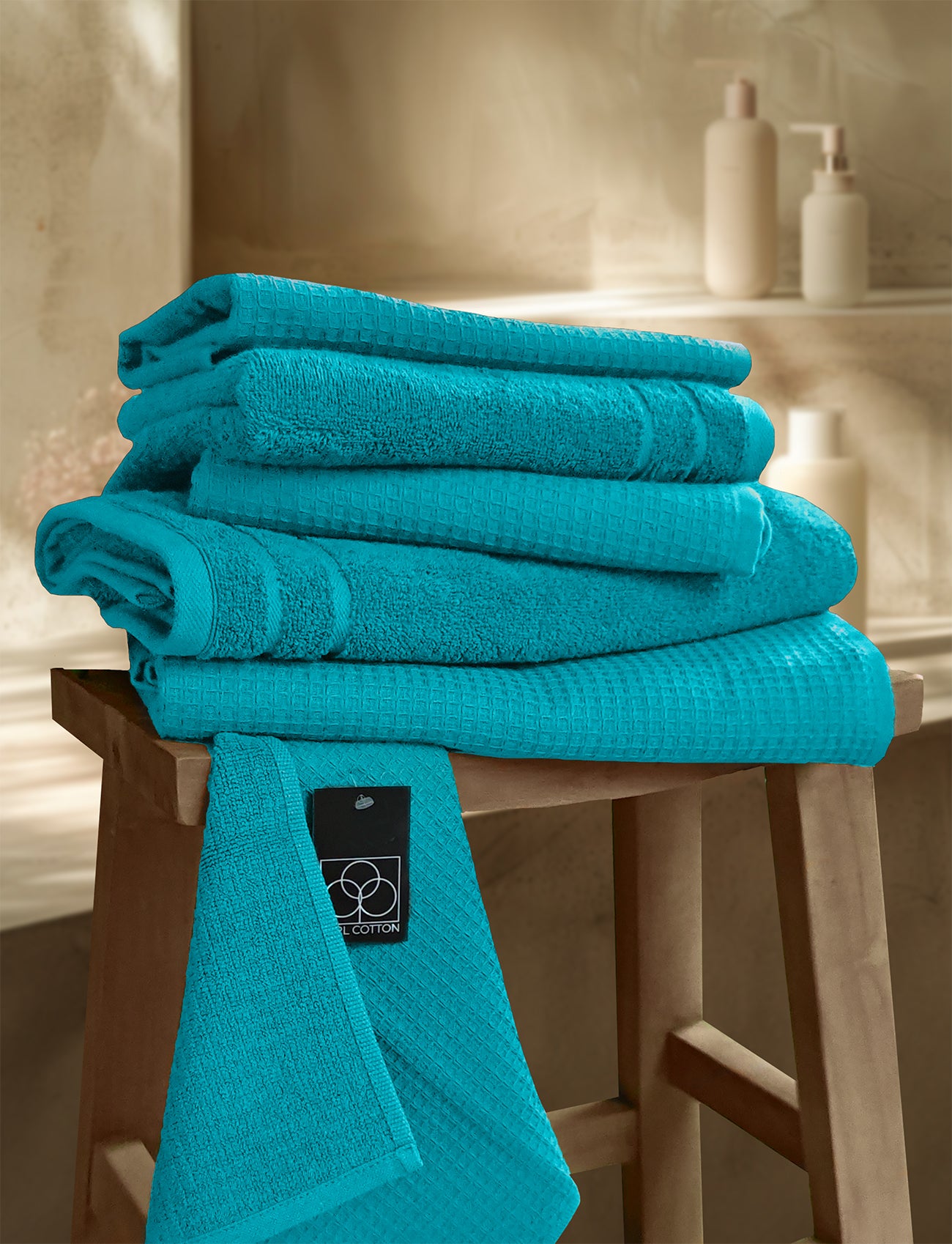 Handtuch CARL COTTON Waffelpiqué, 100% Baumwolle - Türkis